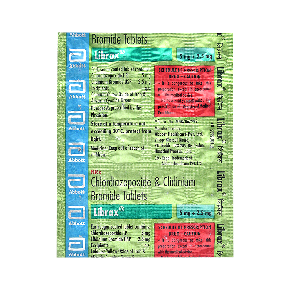 "Take this medicine in the dose and duration as advised by your doctor. Swallow it as a whole. Do not chew, crush or break it. Librax 5 mg/2.5 mg Tablet is to be taken empty stomach.